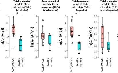 さらに、この検査はThT+粒子とThT-粒子の総量を評価するだけでなく、微microclotsサイズが重要な役割を果たすことも確認した。最先端のイメージング・フローサイトメトリーを用いて、この検査では多数のmicroclots 高精度で分析し、詳細で信頼性の高い評価を可能にしている。例えば、小さなmicroclots Vac後の患者で頻繁にアップレギュレートされるが、中型のmicroclots 同じパターンを示さない。